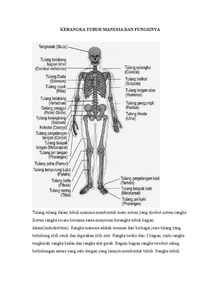 Adapun jenis kerangka manusia dan fungsinya yang dimaksud adalah sebagai berikut rangka aksial merupakan jenis rangka yang memiliki fungsi melindungi organ dalam tubuh manusia. Nah, itulah pembahasan tentang sistem rangka manusia dan fungsinya, serta macam macam tulang pada sistem rangka manusia. Tentunya kita akan seperti seekor cacing besar yang selalu merangkak dipermukaan tanah. Fungsi rangka manusi antara lain sebagai berikut. Salah satu bukti kekuasaan allah swt, adalah diciptakannya alam beseta isinya , termasuk kita umat manusia.